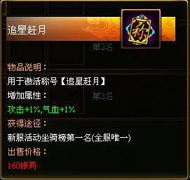 第一名:坐骑升品丹*15、唯一称号[追星赶月]